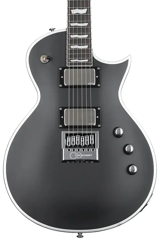 Электрогитара с цельным корпусом из красного дерева, верхняя дека из клена, гриф из красного дерева, накладка на гриф из эбена и 2 активных хамбакерных звукоснимателя - черный сатин.