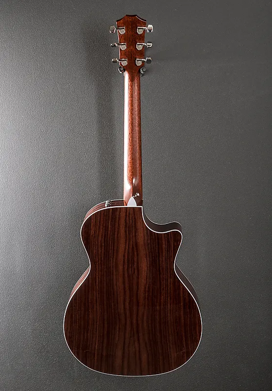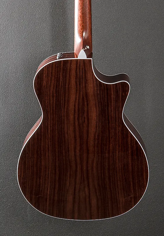 «Благодаря универсальной форме корпуса Grand Auditorium и классическому сочетанию древесины, модель 414ce готова к выступлениям в самых разных музыкальных жанрах. Задняя дека и боковые стороны из палисандра в сочетании с верхней декой из ели ситка обеспечивают теплые низкие частоты, чистые высокие и слегка вогнутый средний диапазон, создавая динамичный тональный характер; в сочетании с нашей резонансной системой V-Class, эта модель идеально подходит для профессиональных музыкантов практически любого стиля. Эффектная отделка верхней деки Sunburst и новые накладки на грифе Finial делают 414ce привлекательной в любом месте, а встроенная электроника ES2 и прилагаемый жесткий чехол позволяют быть готовым к любой музыкальной ситуации.»