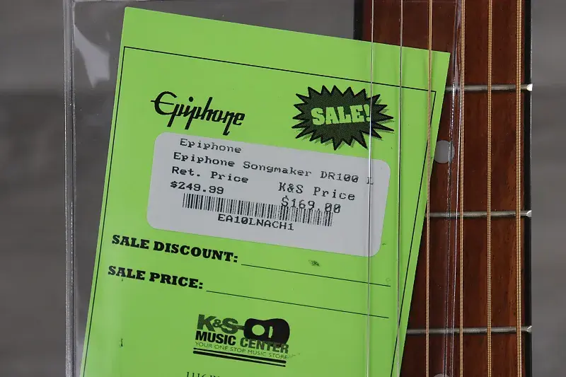 Songmaker DR-100 долгое время была самой продаваемой акустической гитарой Epiphone. Она обладает внешним видом, звуком и качеством сборки, которые ожидают как начинающие, так и профессиональные музыканты, выбирая гитару Epiphone. В ней используется верхняя дека из отборного ели, премиальные колки и корпус из красного дерева. Epiphone поддерживает каждую изготовленную ими гитару с ограниченной пожизненной гарантией и обслуживанием клиентов через Gibson Brands. Жесткий или чехол EpiLite продаются отдельно. Epiphone - для каждой сцены. (Ранее называлась DR-100)
