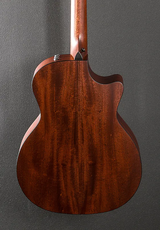 Окраска Shaded Edgeburst, матовое покрытие, форма корпуса Grand Auditorium с венецианским вырезом, верхняя дека из тропического красного дерева, трехкольцевая пластиковая розетка, фанерная конструкция V-Class с Relief Rout, спинка и боковины из тропического красного дерева, черная окантовка, гриф из африканского креоликама Эбен с итальянскими акриловыми инкрустациями из драгоценных камней на тропическом фоне»