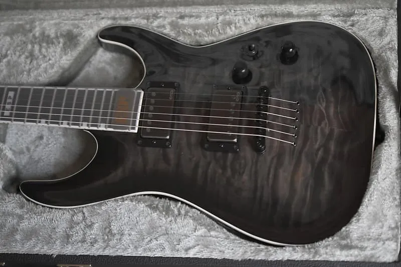 Созданный на заводе ESP в Токио, Япония, серия ESP E-II представляет собой нашу коллекцию инструментов самого высокого качества, произведенных на фабрике. ESP E-II Horizon NT-II - мечта для любителей сустейна, с конструкцией neck-thru-body, а также с мостом Gotoh TOM со сквозным креплением струн через корпус. Эта гитара имеет корпус из красного дерева с топом из кленового шпона и трехсекционную кленовую шейку с накладкой из черного дерева и 24 экстра-джамбо ладов. Вы оцените ощущение тонкой, детальной работы каждый раз, беря в руки E-II Horizon NT-II, включающую высококлассные компоненты, такие как кость для седла грифа, замки для ремня ESP, блокирующие колки Gotoh и многое другое. Эта гитара оснащена набором выдающихся активных звукоснимателей EMG 66 (гриф) и EMG 57 (бридж) в обработке с хромированной поверхностью. E-II Horizon NT-II доступна в прозрачной отделке See Thru Black Sunburst и поставляется с жестким кейсом.