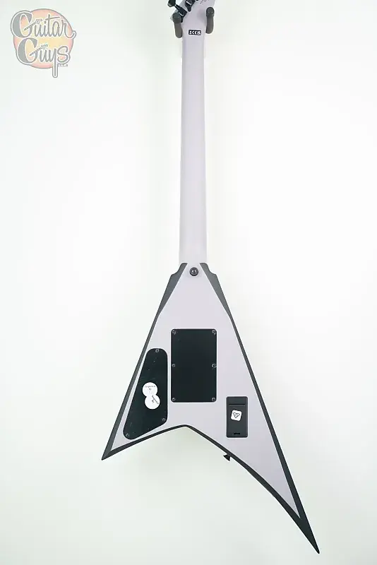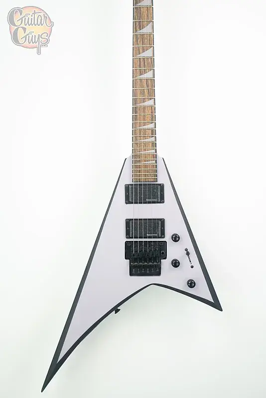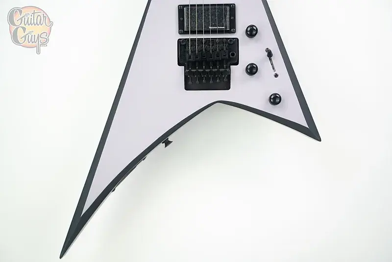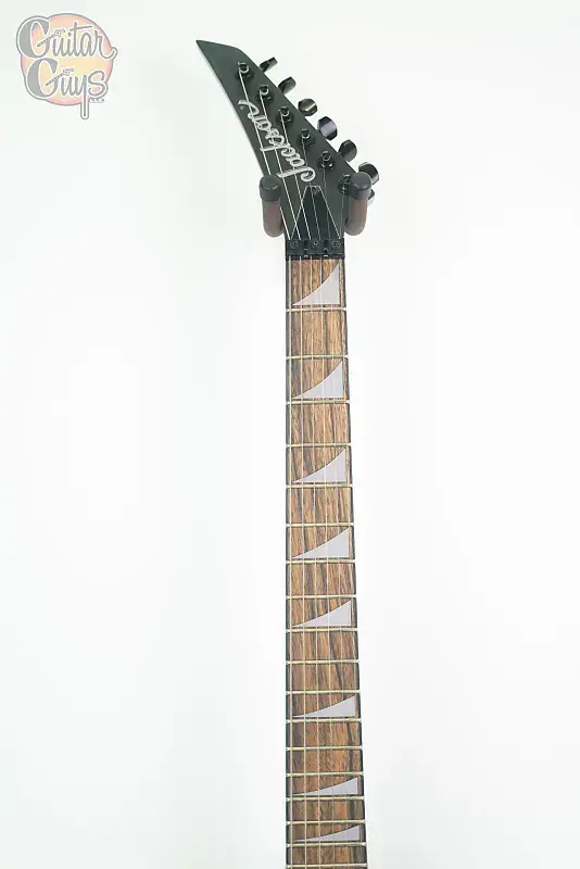 RRX24 имеет корпус из тополя, цельный кленовый гриф со сквозным корпусом с графитовым усилением и шарфовым соединением, лавровый гриф с композитным радиусом 12-16 дюймов с 24 джамбо-ладами и обратную заостренную 6-линейную головку грифа Jackson.