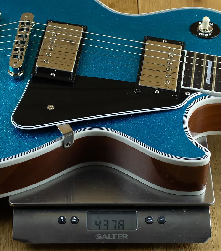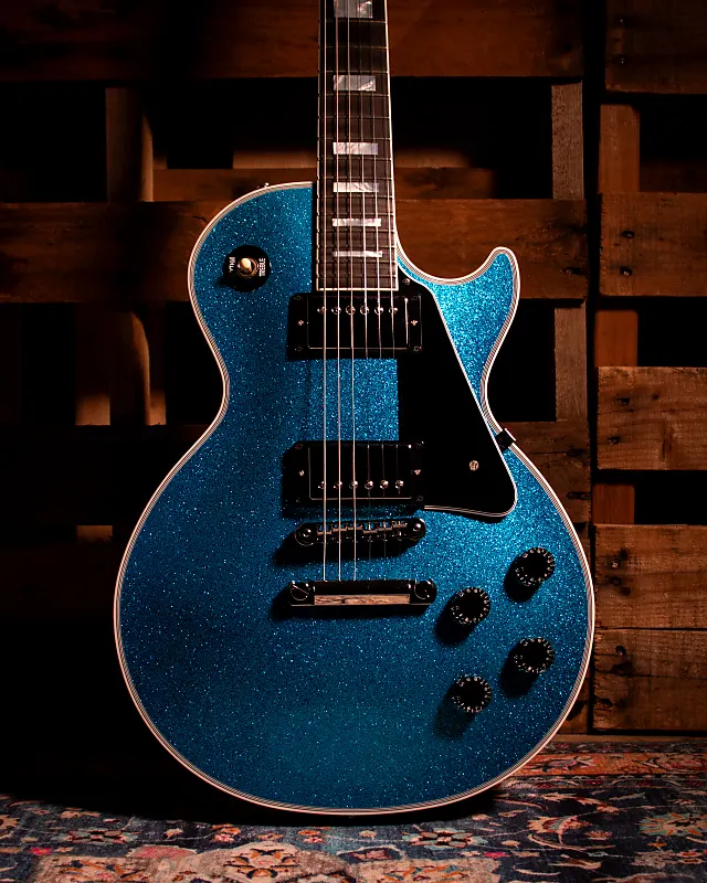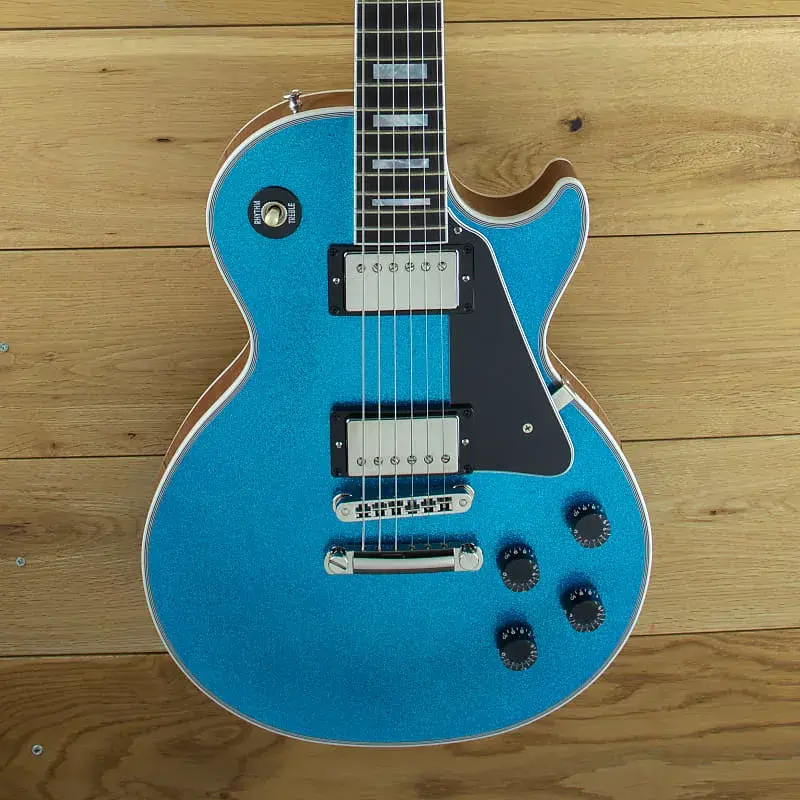 Супер крутая гитара Made to Measure Les Paul Custom в глянцевом синем цвете с золотым блеском и никелевой фурнитурой