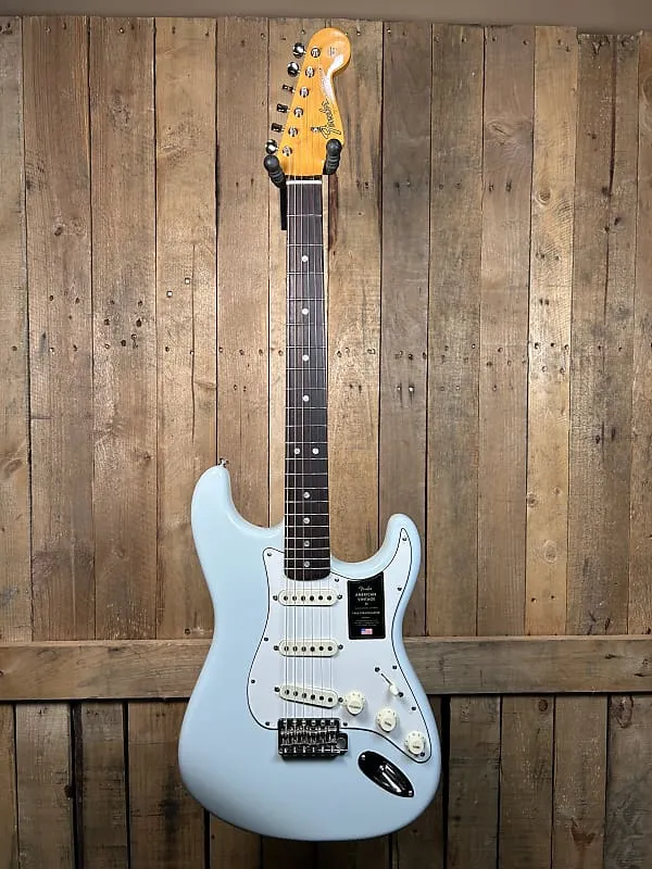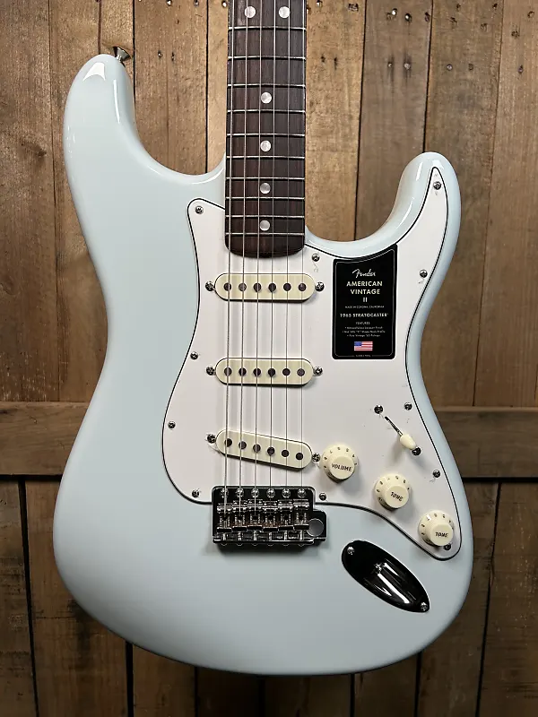 Гитара Fender American Vintage II 1965 Stratocaster в цвете Sonic Blue передает суть стратокастера середины 60-х годов с точными по эпохе спецификациями, винтажным тоном и неповторимым стилем. Сделанная в США, эта гитара является частью трибута Fender своим самым знаковым моделям, предлагая внешний вид, ощущение и звук настоящего Stratocaster 1965 года.