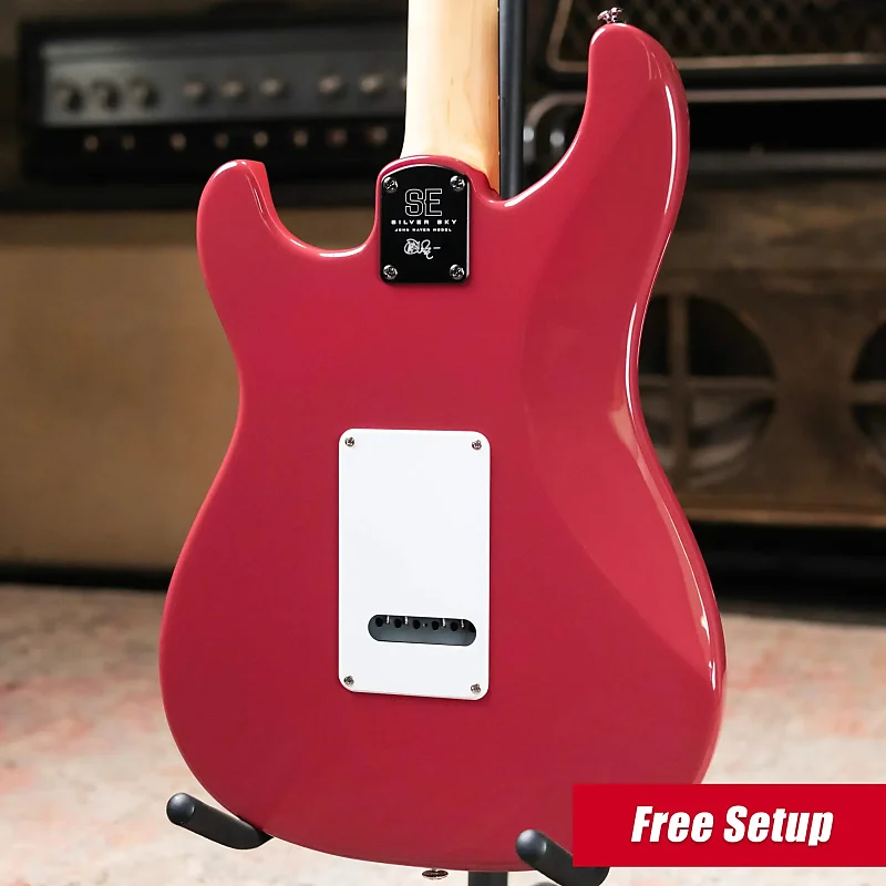 PRS SE Silver Sky сочетает в себе внешний вид, ощущение и тон оригинальной модели John Mayer в более доступном и готовом к дороге инструменте. Уже доступна в Haggerty’s Music, эта надежная гитара объединяет корпус из тополя с прикрепленной к болтам кленовой шейкой и грифом из розового дерева для плавной и отзывчивой игры по всей длине инструмента - идеально для блюза, попа или рока. Гриф с 22 ладами имеет удобную выемку 635JM, длину мензуры 25,5" и радиус 8,5" для привычного и легкого ощущения игры. Оснащенная тремя сингл-датчиками 635JM "S", гитара обеспечивает полный, теплый звук с музыкальными верхними частотами, без резкости. PRS 2-точечное стальное тремоло обеспечивает плавное вибрато с сохранением строя, а колки в винтажном стиле добавляют классическую эстетическую привлекательность и резонанс. Окрас в эффектный Derby Red, эта SE Silver Sky комплектуется чехлом PRS для удобной транспортировки и защиты.