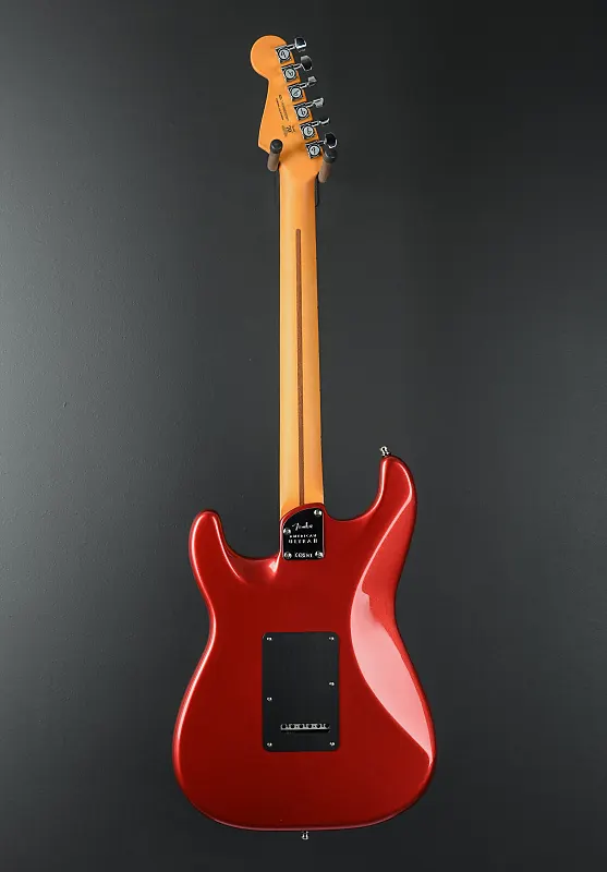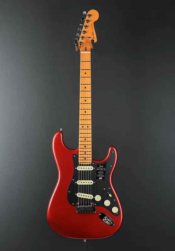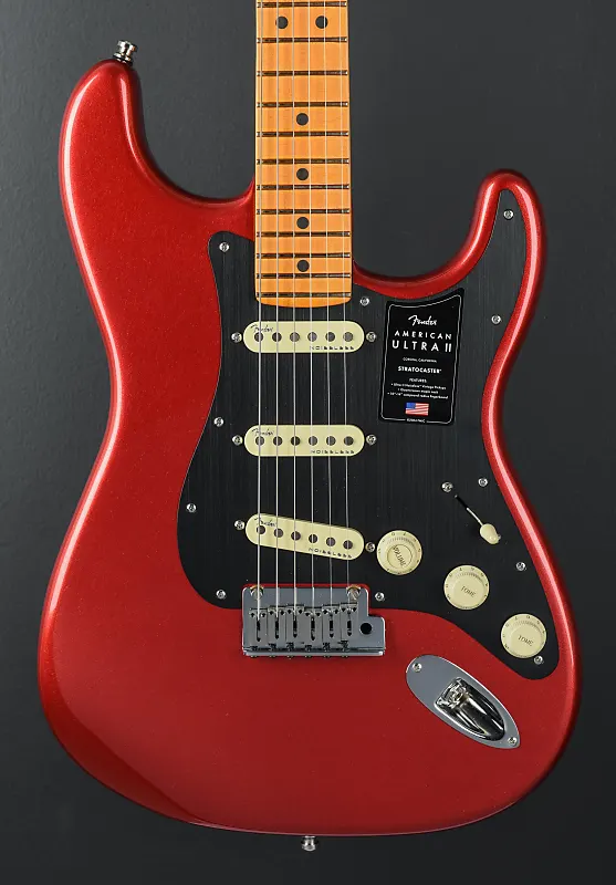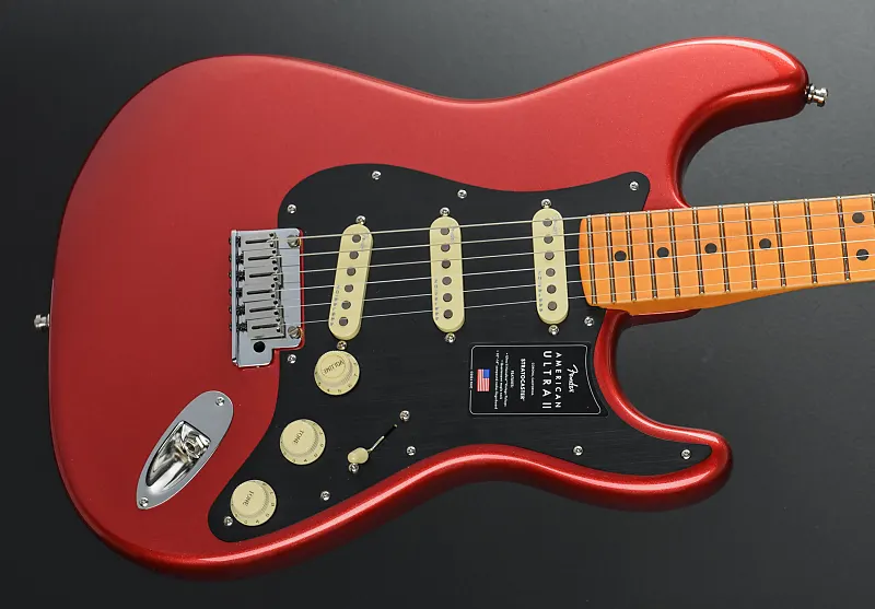Цвет Sinister Red, корпус из отборного ольха, грифовая накладка из кленового дерева с радиусом 10"-14" и точечными инкрустациями, толстые средние лады на грифе Modern "D" из клена с закругленными краями и боковыми точками Luminlay, длина грифа 25,5", ширина верхнего порожка из Graph Tech TUSQ 1,685", звукосниматели Ultra II Noiseless Vintage Strat на позиции грифа/середины/моста, 5-позиционный переключатель с основным регулятором громкости (с переключателем S-1), регулировка тембра. 1. (звукосниматели у грифа/средние), тембр 2. (бриджевый звукосниматель), тремоло 2-Point American Ultra Synchronized с полированными седлами из нержавеющей стали и блоком из холоднокатаной стали, фирменные литые/герметичные блокирующие колки (все с короткими штырями), ?.?? фунтов, поставляется в жестком футляре.