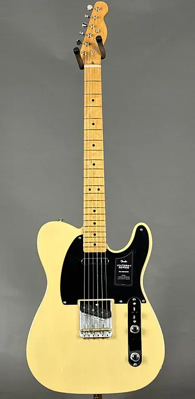 Особенности Vintera II '50s Nocaster включают корпус из ольхи и гриф из клена для классического звучания Fender с яркостью и насыщенностью. Гриф в форме «U» начала 50-х с толстыми плечами обеспечивает аутентичное ощущение и тон, тогда как накладка с радиусом 7,25 дюйма и высокими нотами в винтажном стиле обеспечивает удобство в игре и достаточно места для больших бендов и выразительного вибрато. Внутри вы найдете пару звукоснимателей в стиле '50s, которые передают кристально чистый звон и решительный, металлический твенг, ставшие визитной карточкой Fender. Мост в винтажном стиле с тремя седлами и латунными барабанными седлами предлагает аутентичный твенг 50-х, а колки в винтажном стиле придают классический вид с более точным передаточным числом и улучшенной стабильностью настройки. package.
