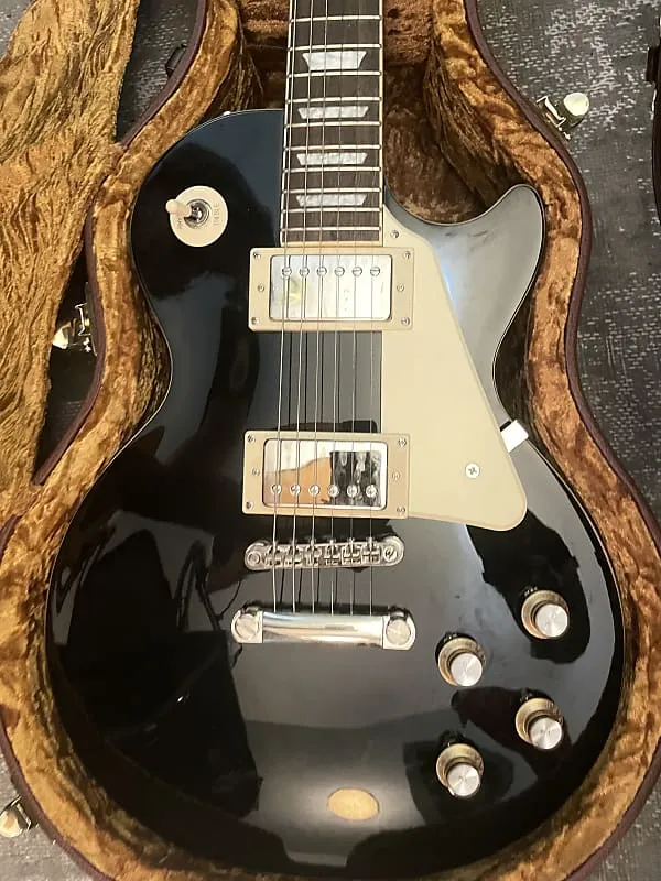 Как новенькая, черная с белым пикгаардом/акцентами и золотыми ручками. Все оригинальное. Куплена в 2023 году для единственного выступления, поэтому на самом деле использовалась только для практики несколько месяцев. На гитаре нет никаких дефектов, за ней часто проводилось техническое обслуживание, однако скоро потребуется новое масло для грифа.