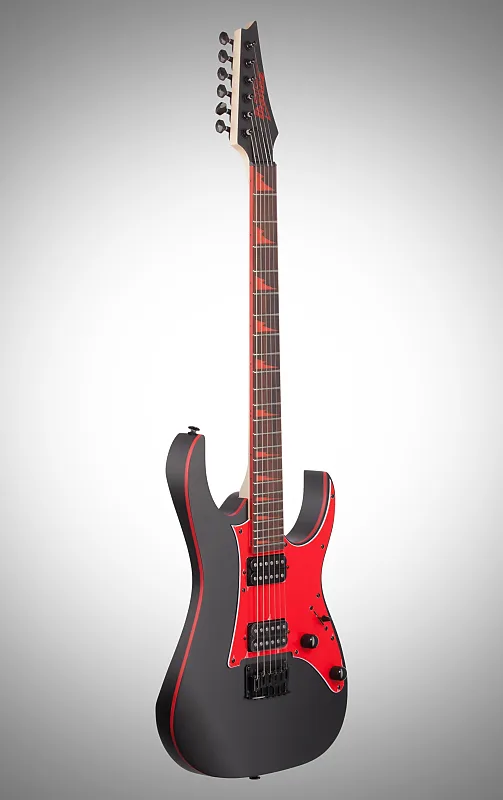 GRG131DX начинается с культового корпуса серии Ibanez RG, изготовленного из тополя. Далее устанавливается гриф GRG из клена с накладкой из обработанной новозеландской сосны, средними ладами и вставками в форме акульих зубов красного цвета. Электроника включает два звукоснимателя Infinity R с 3-позиционным переключателем для разнообразных тональных вариантов прямо на гитаре. вашими кончиками пальцев.