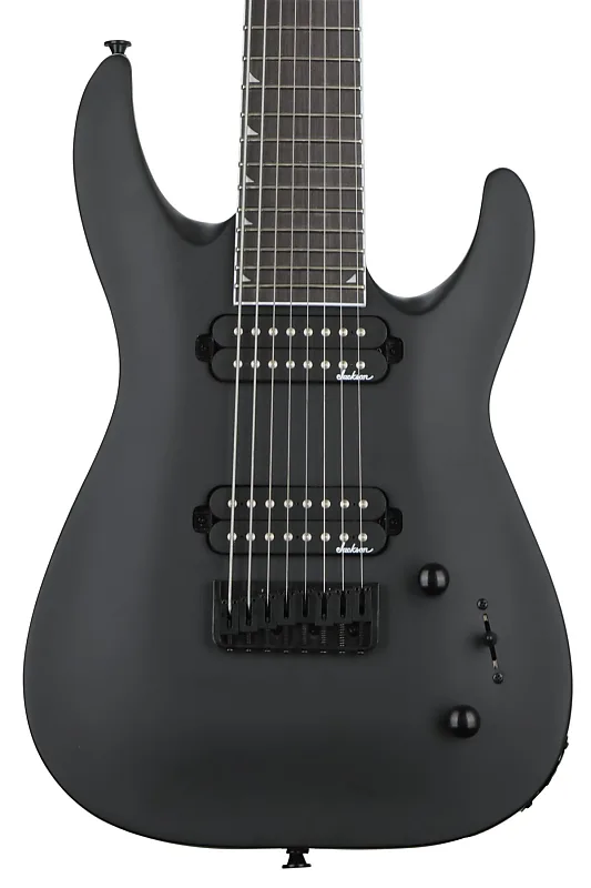 8-струнная электрогитара с цельным корпусом, верхняя дека из тополя, гриф из клена, грифовая накладка из амаранта и 2 хамбакерных звукоснимателя - сатиновый черный.
