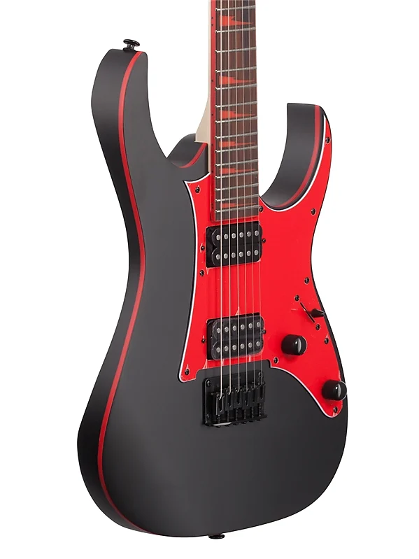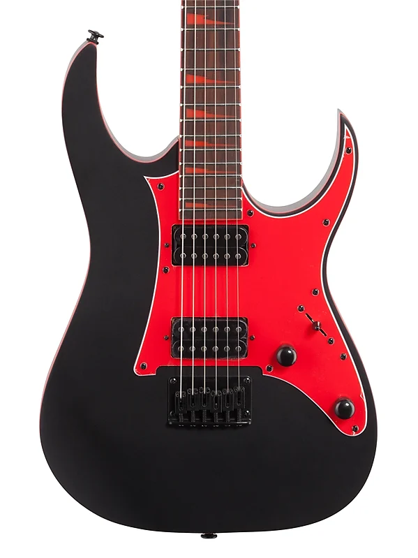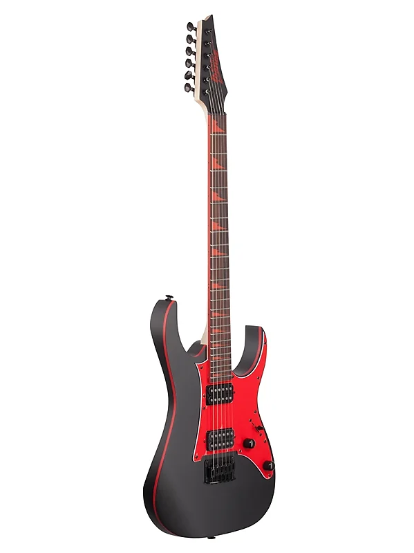 GRG131DX начинается с культового корпуса серии Ibanez RG, изготовленного из тополя. Затем на гитару устанавливается кленовая шея GRG с накладкой из пурпурного дерева с ограничителями, средними ладовыми ступенями и вставками в виде акульих зубов красного цвета. Электроника включает два звукоснимателя Infinity R с трехпозиционным переключателем для разнообразия тональных вариантов, которые находятся у вас под рукой.