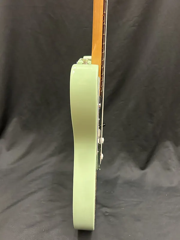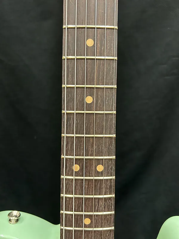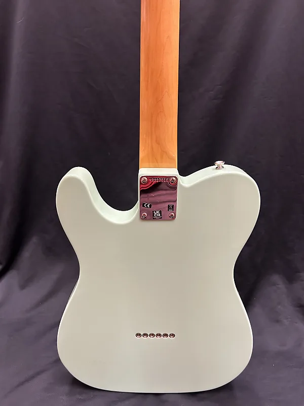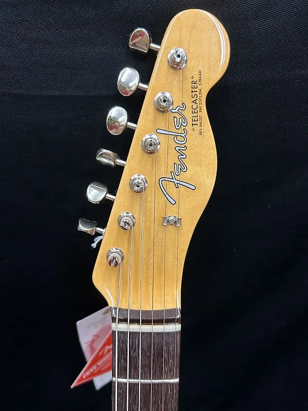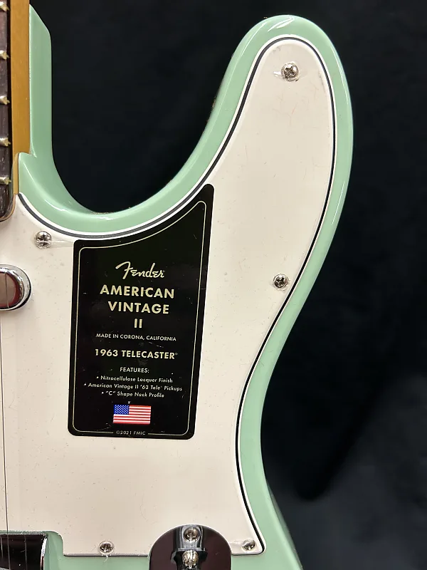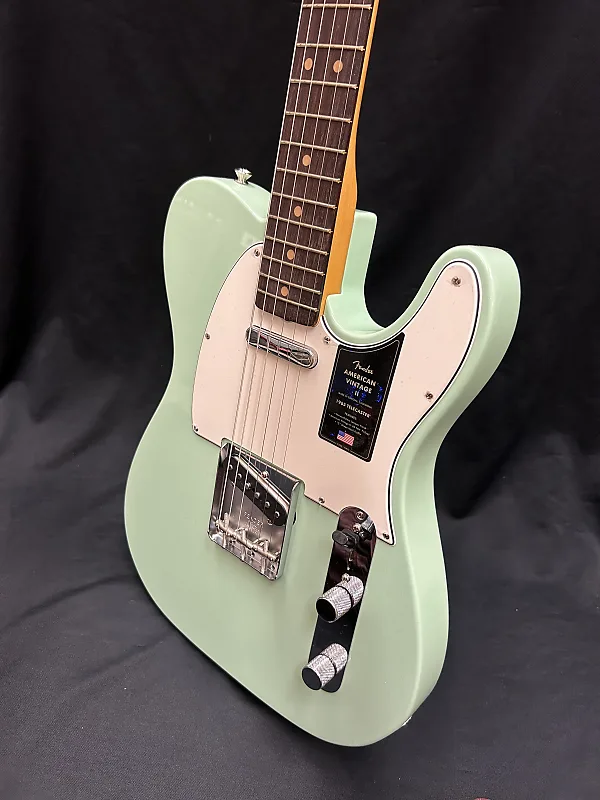 К 1963 году новое сочетание тонких пород дерева объединяло ударность и фокус альдера с теплом, добавленным округлой накладкой из пальмового дерева на грифе, усиливая фирменный звук Tele. С включенными звукоснимателями Pure Vintage '63 Telecaster, мостом с тройными стальными седлами и удобным грифом «C» из клена, American Vintage II 1963 Telecaster воссоздает характерный тон и ощущения оригинала. Характерные для производства 1963 года, эта Tele оснащена глиняными точками (узко расположенными на 12-м ладу), грифом с радиусом 7,25 дюйма и предлагается в трех цветах: Crimson Red Transparent по махагонию и 3-Color Sunburst или Surf Green.