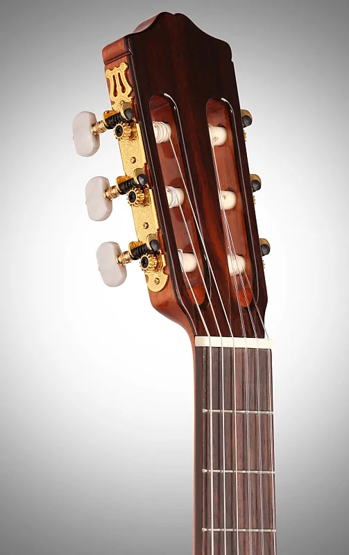 Requinto сделан вручную и включает несколько детализированных отделок, таких как окантовка, подставка, шпон головки грифа и шейный колпачок - все из палисандра. Розетка инкрустирована вручную и выполнена исключительно из натуральной древесины. Это отличная гитара для детей, путешественников или любого, кто ищет легкий инструмент. компактный и удобный в игре инструмент.