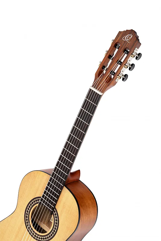 - 6 струн - Серия Student - Концертная гитара 3/4 - Гитара для правшей - Кедровая дека - Корпус из каталпа - Гриф из махагони - Мензура: 590 мм (23,23 дюйма) - Накладка на гриф из ореха - Ширина седла: 45 мм (1,77 дюйма) - Классическая розетка - Мост Ortega с 6 отверстиями
