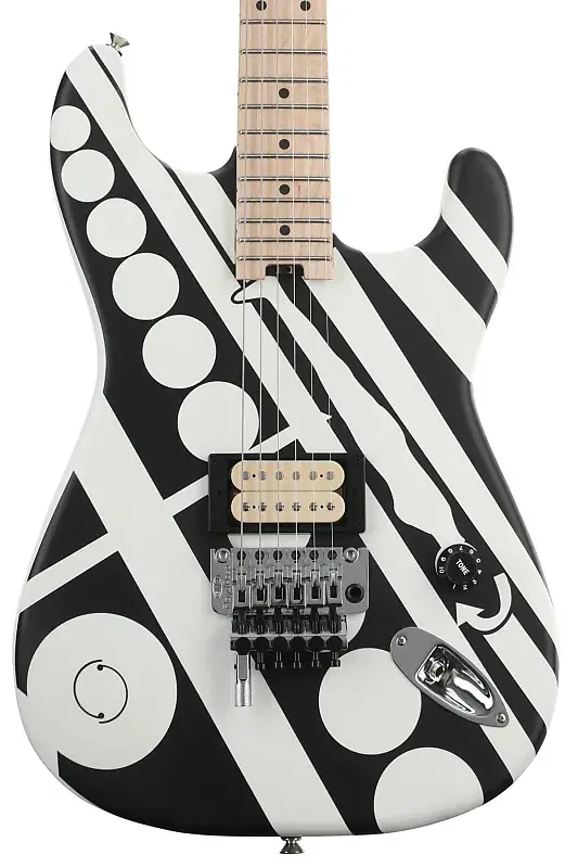 Вдохновленная легендарной гитарой "Unchained", электрогитара EVH Striped Series Circles переносит вас в эпоху тура Fair Warning 1981 года. Эта высокопроизводительная 6-струнная гитара оснащена легким корпусом из липы, оборудованным тремоло Floyd Rose с двойной блокировкой и D-Tuna для высоких падений тона и плавного перехода от стандартного строя к строю Drop D.