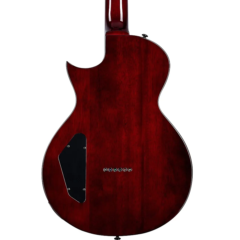 «FT» в LTD EC-201FT означает «flat top» (плоская дека), и именно это мы здесь видим: стильная, обтекаемая гитара в стиле EC, созданная для мощного рока. Она оснащена корпусом из красного дерева и традиционной конструкцией с установленной грифовой частью при масштабе 24,75 дюйма, а также тонким трехсекционным грифом из красного дерева в форме U. Лады EC-201FT выполнены из обожженной ятоба с черной окантовкой, инкрустацией в виде перлоида и 22 экстравеликими ладами. Многоуровневая черная накладка добавляет этой гитаре привлекательный вид и великолепную ценность. Комплектующие включают в себя мост типа TOM с возможностью прохождения струн через корпус, колки LTD и одну мощную хай-выходную хамбакер-пикап ESP LH-150B у бриджа, которую можно разделить на катушки с помощью функции push-pull на главной громкости.