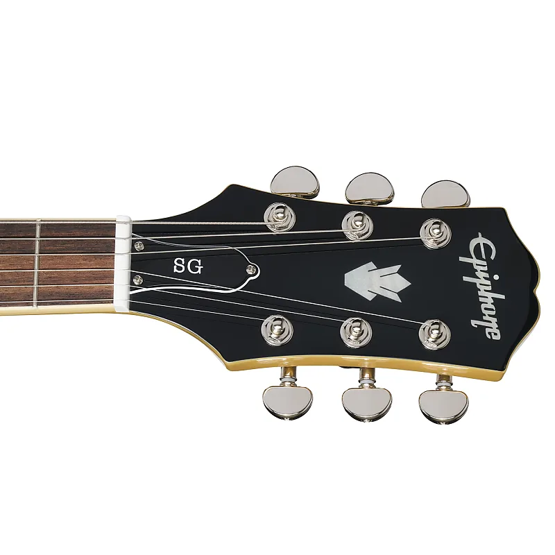 SG Standard украшена никелированной фурнитурой, которая подчеркивает классическую эстетику. Бридж Epiphone LockTone Tune-o-matic и хвостовой стержень Stop Bar гарантируют стабильность настройки и точную интонацию, а тюнеры Grover Rotomatic... обеспечивает плавную и точную настройку. Головка грифа в винтажном стиле Kalamazoo и соответствующая эпохе проводка добавляют классическое очарование в дизайн гитары.