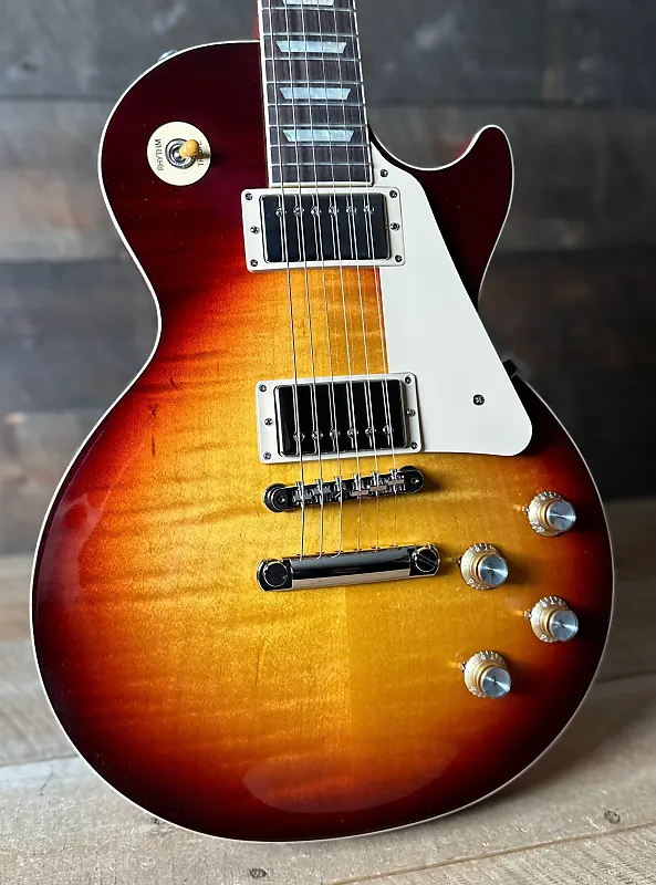 Новая Les Paul Standard возвращается к классическому дизайну, который сделал ее популярной, востребованной и любимой - формируя звук на протяжении поколений и жанров музыки. Она отдает дань эпохе «Золотого времени» Gibson и вновь приносит аутентичность в жизнь. Les Paul Standard 60's имеет корпус из цельного махагони с верхней декой из кленового шпона категории AA, а также гриф в стиле 60-х из махагони с узким профилем, накладку из палисандра и трапециевидные фасетки. Она оснащена классическим мостом Tune-O-Matic, алюминиевой задней распоркой, механикой Grover Rotomatic "Kidney" и золотыми ручками с серебряными отражателями. Звукосниматели Burstbucker 61R (шейка) и Burstbucker 61T (бридж) используют магниты AlNiCo V, потенциометры с аудио-кривой и конденсаторы Orange Drop.