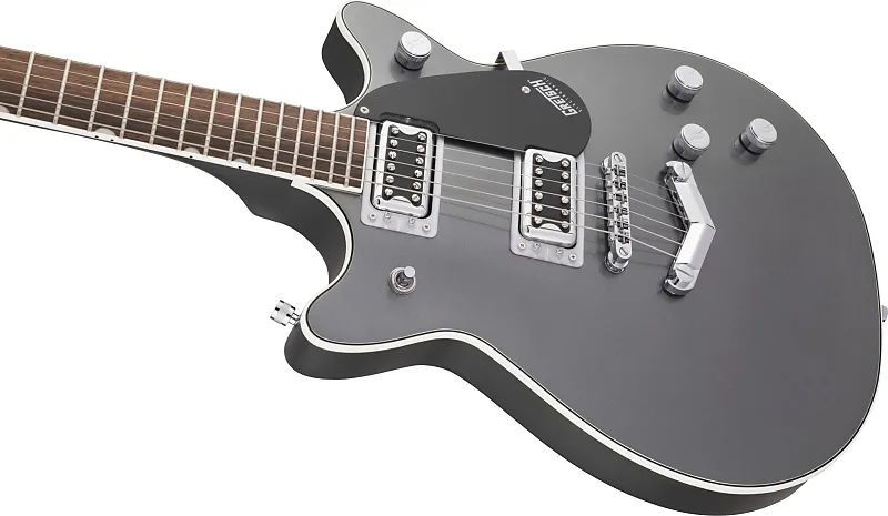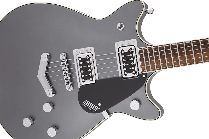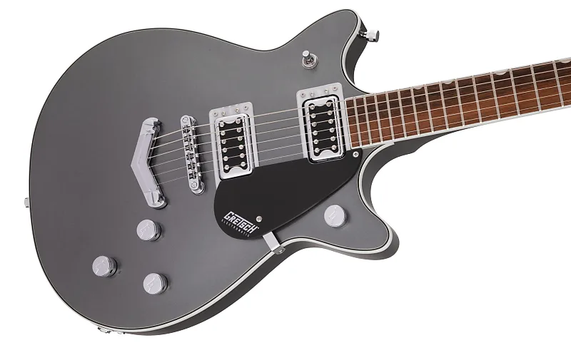 Совершенно новая G5222 Electromatic Double Jet BT V-Stoptail обеспечивает мощность Broad'Tron с классической четкостью Jet. В основе каждой Electromatic Jet BT находится корпус из камерного махагона с верхней декой из клена, который обеспечивает богатый, выразительный средний диапазон, подчеркивающий глубокие низкие и сверкающие высокие частоты. Пара звукоснимателей Black Top Broad'Tron усиливает звук камерного корпуса из махагона с верхом из клена через плотный, агрессивный овердрайв, при этом сохраняя удивительную четкость и баланс нот, подходящий для чистого звучания. Electromatic Jet BT оснащена необходимыми функциями, обеспечивающими полный контроль над тоном. Комбинация индивидуальных регуляторов громкости для каждого звукоснимателя, главный регулятор тембра и громкости с цепью treble bleed обеспечивает интуитивное управление всеми настройками звукоснимателей и тембра.