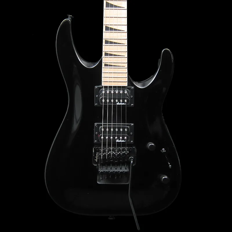 Arch Top JS32 DKA-M имеет элегантное арочное топовое тело из тополя, прикручиваемый кленовый гриф с графитовым усилением, накладку грифа из клена со скругленным радиусом (12"-16") с 24 джамбо ладами и черными вставками Sharkfin, а также обвязку головки грифа. Другие характеристики включают двойные высокоэффективные звукосниматели Jackson с керамическими магнитами и трехпозиционный переключатель, а также двойную блокирующую тремоло Floyd Rose под брендом Jackson. мост, черная фурнитура и литые колки.