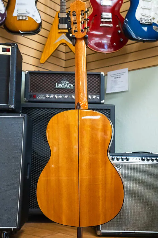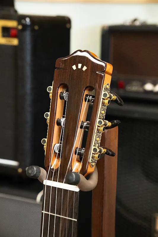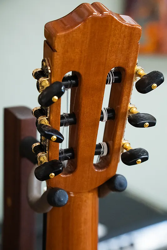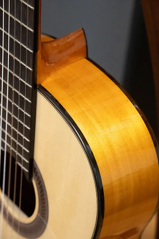 Гитара оснащена верхней декой из европейской ели и корпусом сзади и по бокам из кипариса.