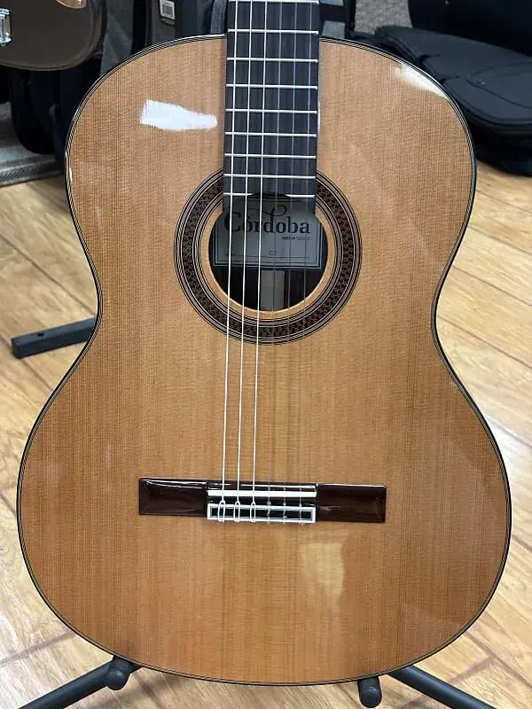 У нас, в JAMS Music, есть совершенно новая классическая гитара Cordoba C7, весом 3,4 фунта.