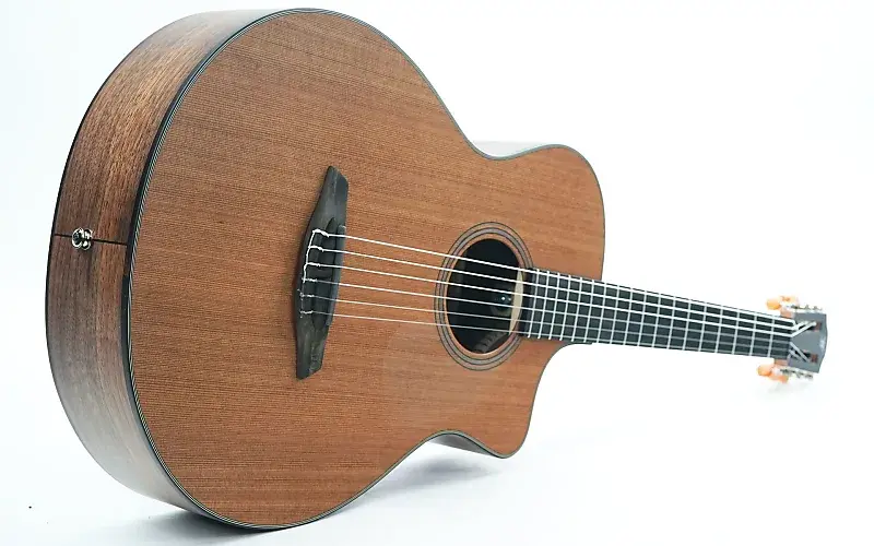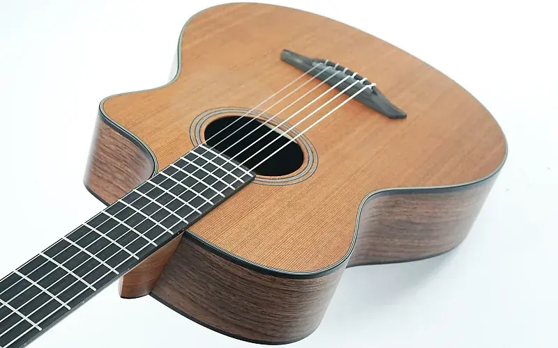 Сочетание черного ореха для корпуса и западного красного кедра для верхней деки дает теплое, сбалансированное звучание с богатым средним регистром и чистыми верхами. Запатентованная система CNR является умным решением