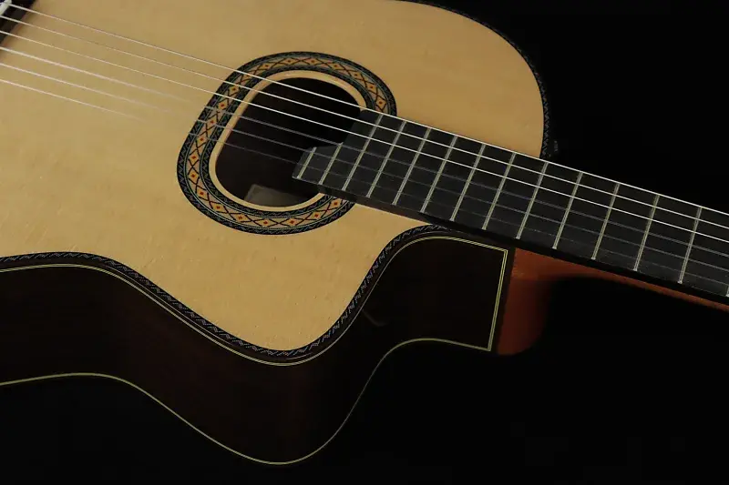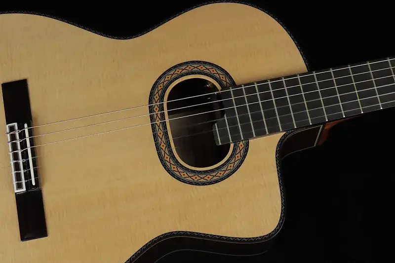 Овальное резонаторное отверстие и верхняя дека из цельной ели обеспечивают инструменту мощное звучание басов, выразительные средние частоты и чистые верхние. Гриф и корпус из палисандра способствуют отличной проекции звука.