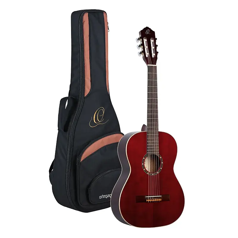Ortega R121-7/8WR 6-струнная классическая гитара из серии Family Series. Гитара выполнена в размере 7/8 с верхней декой из ели. Задняя дека и обечайки сделаны из красного дерева, гриф из красного дерева, а накладка на гриф из древесины Sonokeling оснащена 19 ладами. Ширина у нулевого лада составляет 47 мм, мензура гитары - 615 мм. Гитара имеет глянцевую отделку. Гитара поставляется в чехле.