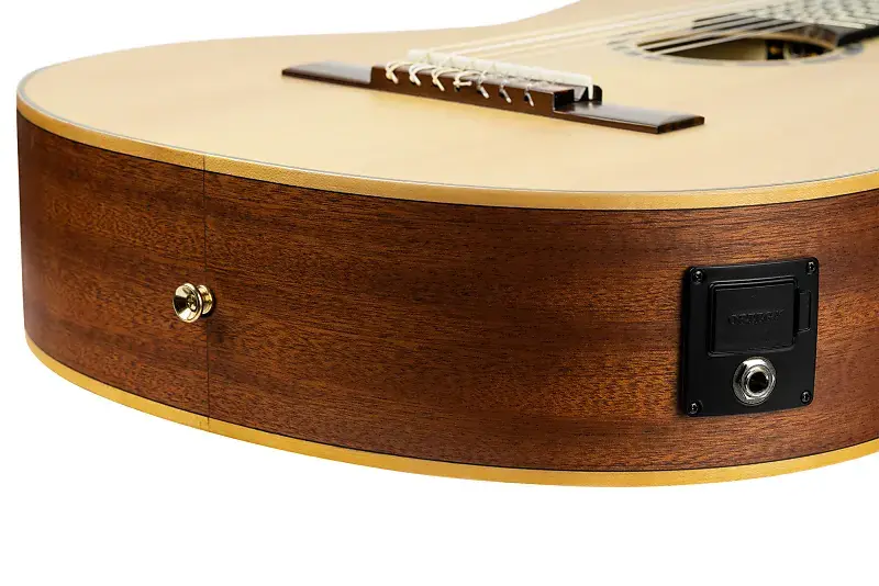 Семиструнная гитара - это бразильский вариант классической гитары, который в основном используется в хорo и самбе. Дополнительная низкая струна может быть настроена как в B, так и в C - что позволяет легко исполнять большинство популярных композиций и обеспечивает более широкое развитие басовых линий в рамках традиционной гармонии гитары. Концертная семиструнная гитара Ortega Guitars с профессиональной комплектацией и отличным соотношением цены и качества, с массивной еловой декой и корпусом из махагони, создает красивый звук, а ширина подставки и 7-отверстковый бридж Ortega продолжают обеспечивать комфортное исполнение. Обе гитары поставляются с сумкой Ortega Deluxe Gig Bag.