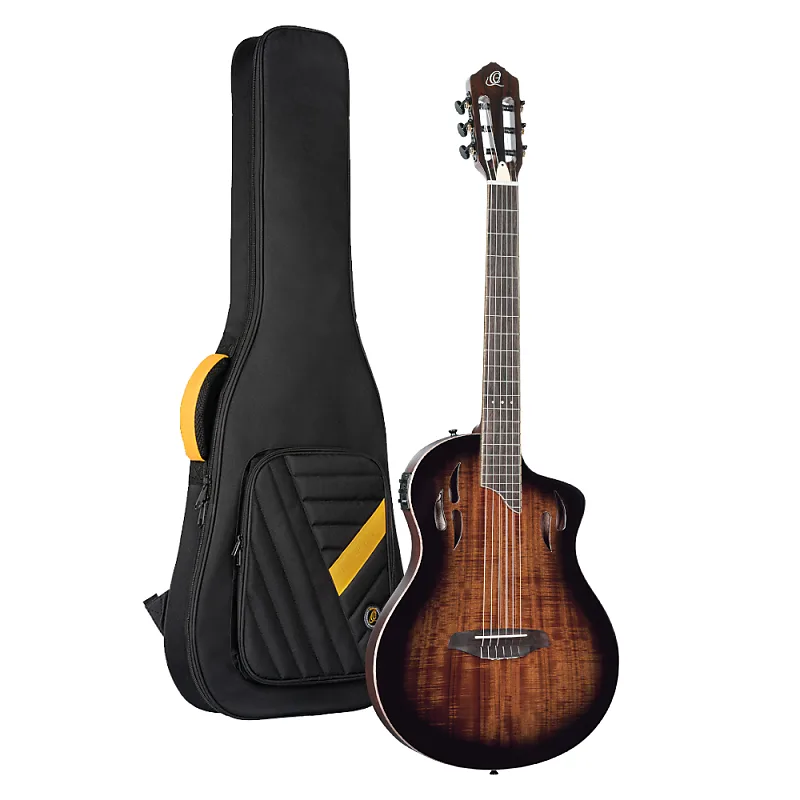 Ortega RTPDLX-ACA - это классическая гитара из серии TourPlayer. Верхняя дека гитары выполнена из акации, задняя дека и обечайки - из массива окуме. Гриф с накладкой из лавра оснащен 19 ладами. Гриф гитары сделан из окуме, ширина у нулевого лада - 48 мм, мензура - 650 мм. Гитара имеет глянцевую поверхность и оснащена системой звукоснимателя Ortega MAGUSX с встроенным тюнером. Гитара продается вместе с оригинальным чехлом TourPlayer.