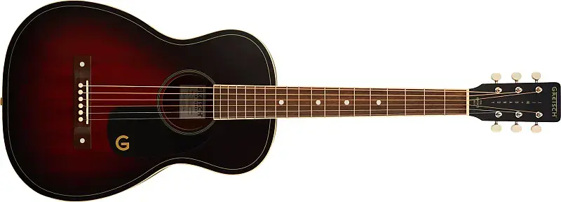 Гитара Gretsch Jim Dandy Parlour представлена здесь в отделке Deep Cherry Burst, соответствующей эпохе. Разработанная для имитации старинных грештских парлор-гифар начала 20-го века, эта гитара стала отправной точкой для карьеры многих гитаристов. С теплым звучанием и легкостью в игре, Jim Dandy является одной из самых выразительных маленьких гитар, которые можно купить за деньги!