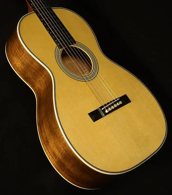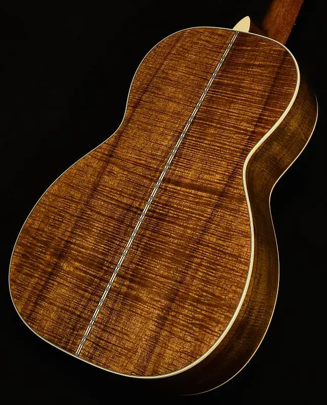 Эта koa Custom Shop 0-28 просто великолепна. Она теплая и древесная с фортепианоподобным атакующим звуком, который вырывается из резонатора, как только ваша медиатор или палец касается струны, а молниеносная скорость отклика делает игру на ней невероятно увлекательной! У нее также удивительно мощный низ, щедрый средний диапазон и сладкие, солнечные высокие частоты. Она производит сильный, ударный основной тон, который прекрасно сочетается с гармоническими обертонами, создавая идеально сбалансированное звучание с отличной проекцией. Однотактные партии имеют достаточное количество баса, быстрые пассажи проходят с идеальной точностью интонации, а аккорды звучат с прекрасным балансом.