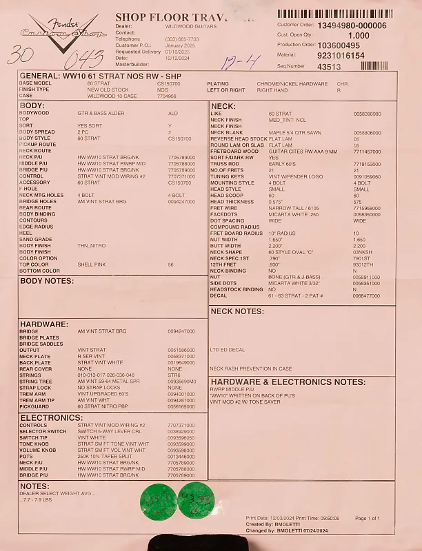 - Модель: Dealer Select Wildwood 10 '61 Strat