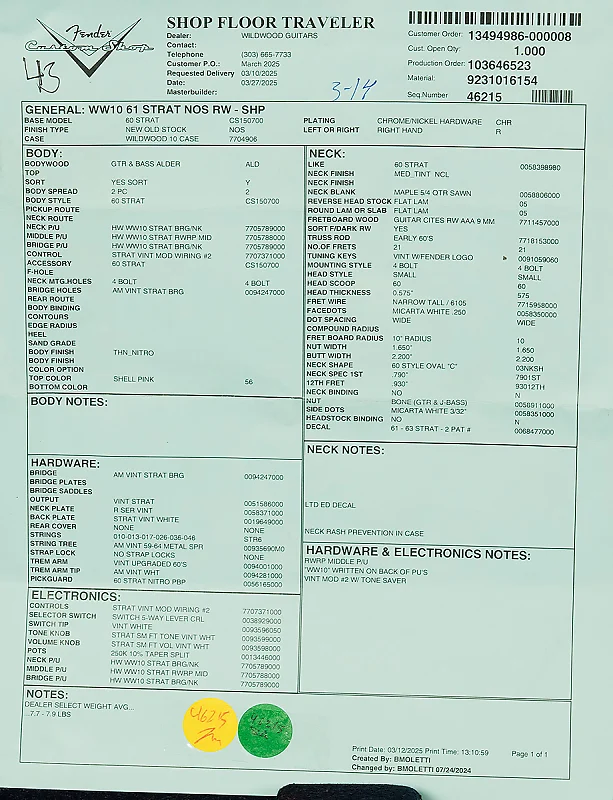 - Модель: Dealer Select Wildwood 10 '61 Strat