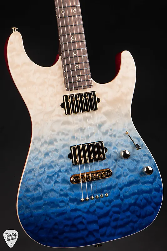 Suhr Standard Rosewood Neck - Blue Gradient - это потрясающая, мастерски изготовленная гитара, сочетающая в себе элегантную эстетику с превосходной производительностью. Корпус из двух частей из красного дерева, увенчанный поразительным топом из стеганого клена, выполненным из двух частей, отделка Blue Gradient плавно перетекает в его контурную форму, подчеркнутую контурами рук, кистей и живота, которые обеспечивают максимальный комфорт и удобство игры. Гриф и накладка грифа из индийского палисандра в сочетании с масляной отделкой грифа обеспечивают шелковисто-гладкое ощущение и богатую теплоту тона. Сформированный по стандартному профилю 60-х годов C Vintage Standard (.810 - .930") с общим радиусом 9 - 12 дюймов, этот гриф одновременно быстрый и знакомый, дополненный стандартным роллом для легкого ладтинга.