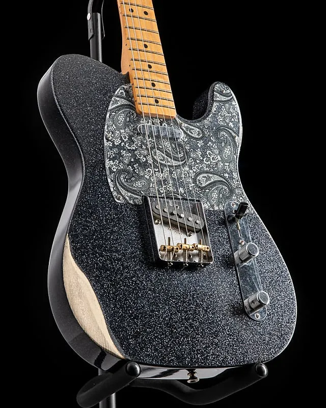 Знаменитая суперзвезда современной кантри-музыки, Брэд Пейсли определил гитарный звук, наполненный голосом и атмосферой Telecaster. Мы объединились с этим отмеченным наградами гитаристом, чтобы создать его фирменную модель - ограниченную серию Brad Paisley Road Worn Telecaster. Привлекательный инструмент с настоящим чарующим кантри-моментом, этот испытанный на сцене Telecaster идеально подходит для добавления ноток Нэшвилла в ваш арсенал. Гитара Brad Paisley Telecaster выполнена с сердцевиной из павловнии и верхней дека из ели, обеспечивая прочную и легкую основу с акустическим резонансом. Одобренная самим Пейсли конфигурация звукоснимателей включает пользовательский '64 Tele мостовой звукосниматель и Fender Custom Shop Twisted Tele грифовый звукосниматель для классического тона с идеальным балансом тепла и звонкости. Играбельность - ключевой момент для стремительного стиля игры Пейсли, а улучшенный гриф типа "V" делает исполнение еще более удобным. профиль разработан для комфорта, заполняя ладонь у гайки для удобного аккордирования, при этом сглаживаясь в верхних регистрах для сольной игры. Современная накладка на гриф с радиусом 9,5" и средне-гигантские лады позволяют легко играть быстро и делать большие бенды. Этот Telecster покрыт лаком Road Worn с блестками и состаренной фурнитурой, вдохновленной многолетними гастролями. Элегантные фирменные детали включают специальный прозрачный пикгард с черными и серебряными узорами пейсли и значок с ковбойской шляпой на головке грифа. Проще говоря, этот инструмент легок в игре, необходим для любителей Tele и занимает центральное место в любой коллекции кантри.