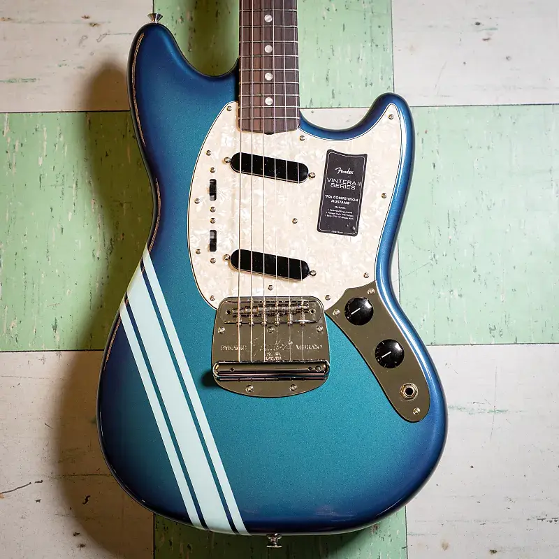 Vintera II '70s Competition Mustang оснащена корпусом из ольхи и грифом из клена с накладкой из розового дерева, что обеспечивает классический тон Fender с яркостью и четкостью. Гриф в форме "C" начала 70-х основан на классическом профиле 70-х для интуитивного и комфортного ощущения, а накладка радиусом 7,25" с ладовыми порожками vintage-tall обеспечивает винтажный комфорт с большим пространством для широких гитарных изгибов и выразительного вибрато. Внутри, винтажные звукосниматели одиночной катушки в стиле 70-х передают весь сладкий и сверкающий, теплый и древесный тон, благодаря которому Fender стала известна. Винтажный стиль Плавающий тремоло Mustang позволяет свободно нырять в звуки и вопить, а тюнинговые механизмы с клеймом «F» обеспечивают классический вид и повышенную стабильность настройки, завершая комплект.