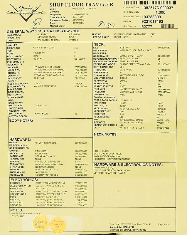 - Модель: Dealer Select Wildwood 10 '61 Strat