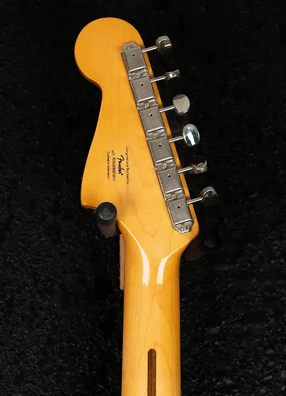 плавающий бридж с седлами-цилиндрами для надежной стабильности струн. Эта ретро-модель Squier также оснащена маркировкой на головке грифа в стиле 1960-х,