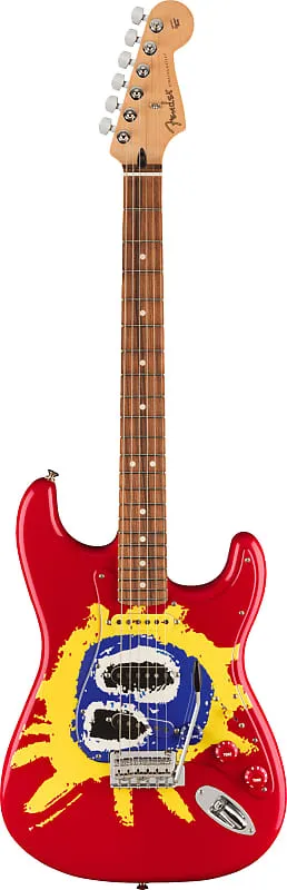 Ограниченная серия Stratocaster Screamadelica 30th Anniversary посвящена этому знаковому альбому с уникальной полноцветной графикой на основе яркой обложки альбома красного, желтого и синего цветов - включая подходящую накладку на гриф, крышки звукоснимателей и ручки регулировки.