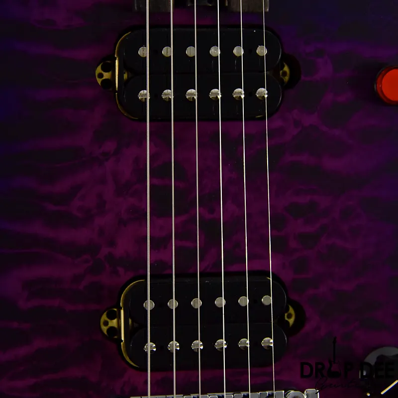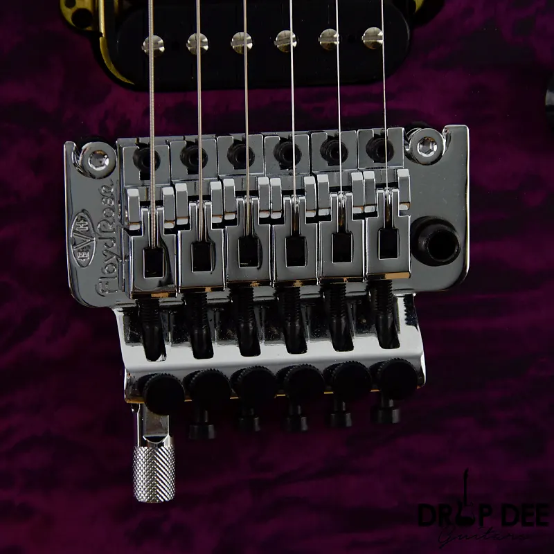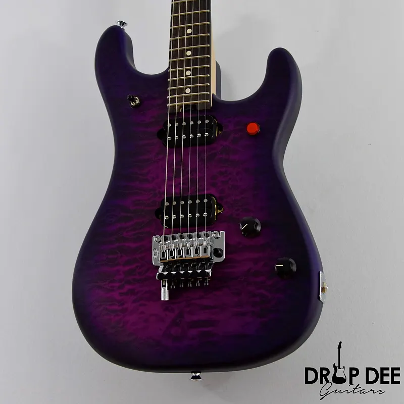 Стилизованный современный вариант фаворита фанатов, 5150 Deluxe наверняка впечатлит своими рифленый кленовый верх с отделкой в ярком цвете Purple Daze и полностью хромированной фурнитурой, включая тюнинговые механизмы Gotoh с брендом EVH.