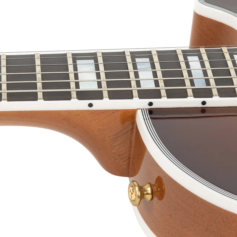 Распаковка Gibson Custom M2M Les Paul Custom - это уже отдельное событие. Покрытие Viceroy Goldburst мгновенно привлекает внимание, а золотая фурнитура и инкрустация из перламутра добавляют элегантности. Натуральная задняя сторона и кремовое окантование прекрасно контрастируют с богатым, темным оттенком передней части, делая ее обязательной для любого гитариста, желающего выделиться.