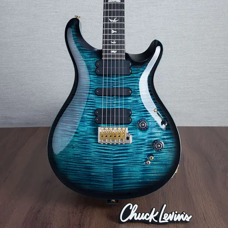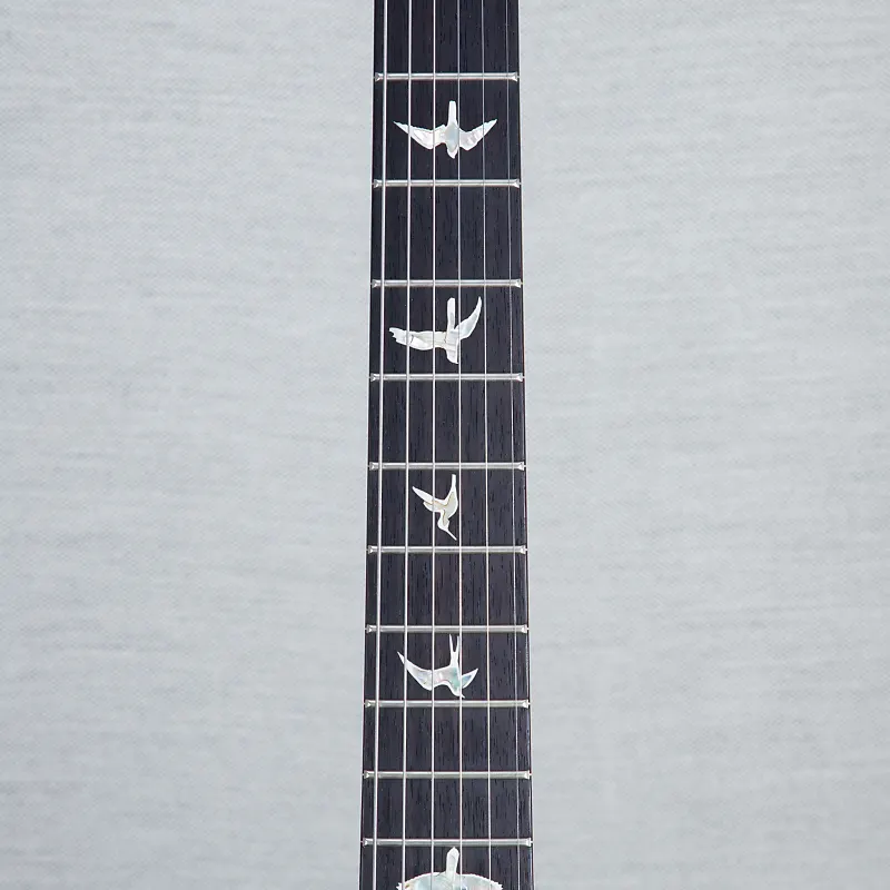 Особые особенности включают увеличенную мензуру длиной 25,25 дюйма, которая добавляет верхние гармонические переливы, и запатентованный тремоло PRS Gen III, обеспечивающий впечатляющее сустейн.