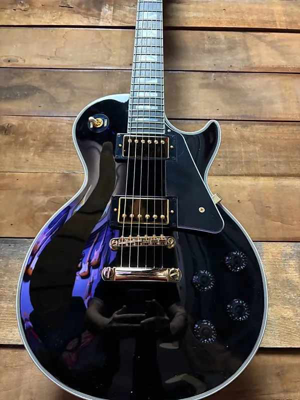 В рамках продолжающегося сотрудничества с Gibson Custom, компания Epiphone с гордостью представляет флагманскую модель Les Paul Custom в линейке Inspired by Gibson Custom. Эта прекрасная гитара оснащена всеми изысканными элементами «смокингового» стиля, которыми известна модель: цельным грифом из красного дерева с профилем Modern Medium C, накладкой на гриф из эбена и инкрустациями из перламутра в виде блоков. Также на головке грифа в стиле Gibson «открытая книга» расположены инкрустации из перламутра в виде раздельного ромба и логотип Epiphone. Золотая фурнитура, включая механические колки Grover Rotomatic с передаточным числом 18:1, добавляет гитаре визуальной привлекательности. Корпус из цельного красного дерева с кленовой крышкой обеспечивает дополнительную яркость звучания, в то время как звукосниматели Gibson USA 490R и 498T обеспечивают тональную сложность и достаточно мощности. вся эта красота. Они имеют ручную проводку к потенциометрам CTS, разъему выхода и переключателю звукоснимателей Switchcraft, а также конденсаторам Mallory. На задней части головки грифа расположен логотип в виде двойного ромба Inspired by Gibson Custom, а также в комплект входит черный жесткий футляр с логотипом Inspired by Gibson Custom и внутренней отделкой цвета золотистой охры.