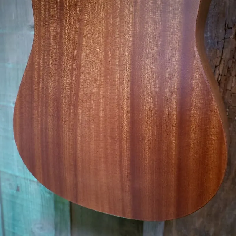 Комбинация верхней деки из ели и задней деки и обечайки из красного дерева, дополненная грифом и бриджем из палисандра, создает теплый и насыщенный тон с бархатистыми высокими частотами.