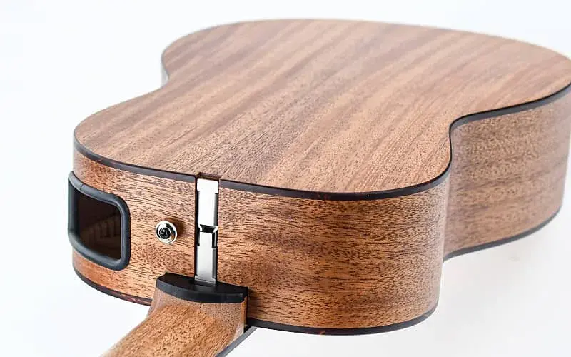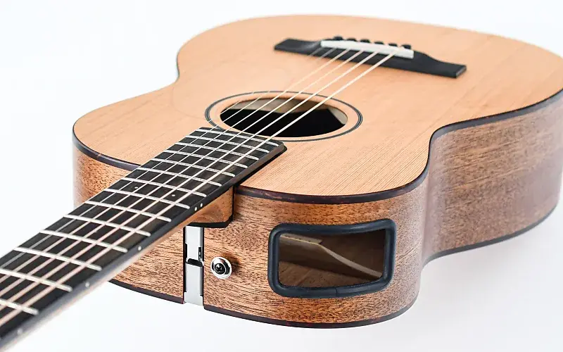 Конструкция полностью массивная с верхом из западного красного кедра и спиной и боками из африканского махагона. Разобрать эту гитару и собрать ее заново вам займет не больше 30 секунд.