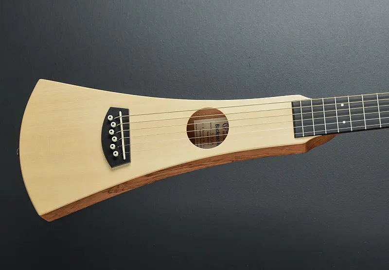 «Небо - предел для портативности! Путешественная гитара Backpacker со стальными струнами легкая, прочная, удобная для игры (и настройки) и имеет форму, позволяющую помещаться в самые маленькие места. Сделана из цельных резонансных пород древесины. В этой модели используются элементы из древесины с сертификатом устойчивого происхождения.»