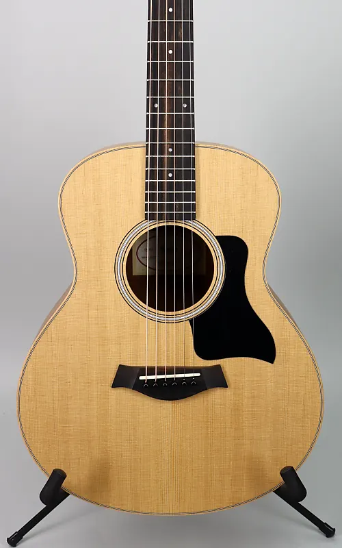 Технические характеристики: ножка из цельной ели; многослойная слапелевая задняя и боковые части, гриф; гриф Taylor NT; грифовая доска и бридж из эбена с седлом и верхним порожком из Micarta/Tusq; литые хромированные колки; 20 ладов; мензура 23,5″; ширина верхнего порожка 1,6875″. В комплекте мягкий чехол для гитары.