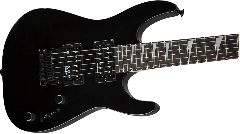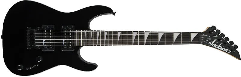 Другие характеристики включают наклонную заднюю головку грифа для равномерного распределения натяжения (уменьшающего усталость при игре), скульптурный каблук для удобной игры на верхних ладах, двойные хамбакеры Jackson с высоким выходом с трехпозиционным переключателем, жесткий срезной мост через корпус и черную фурнитуру.